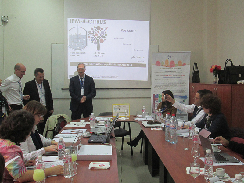 IPM-4-Citrus PM1 meeting took place on 19th and 20th April 2018 at CBS (Sfax, Tunisia) in pleasant and open exchange atmosphere. All consortium partners (23 persons) were present in addition to staff members associated to communication & dissemination, financial and administrative management. Exchanges and questions have been related as well as reminder to (i) RISE operating mode, (ii) the discovery of EU Portal, IPM-4-Citrus workspace and Website, (iii) modification related to GA amendment and (iv) scientific & technical progress.